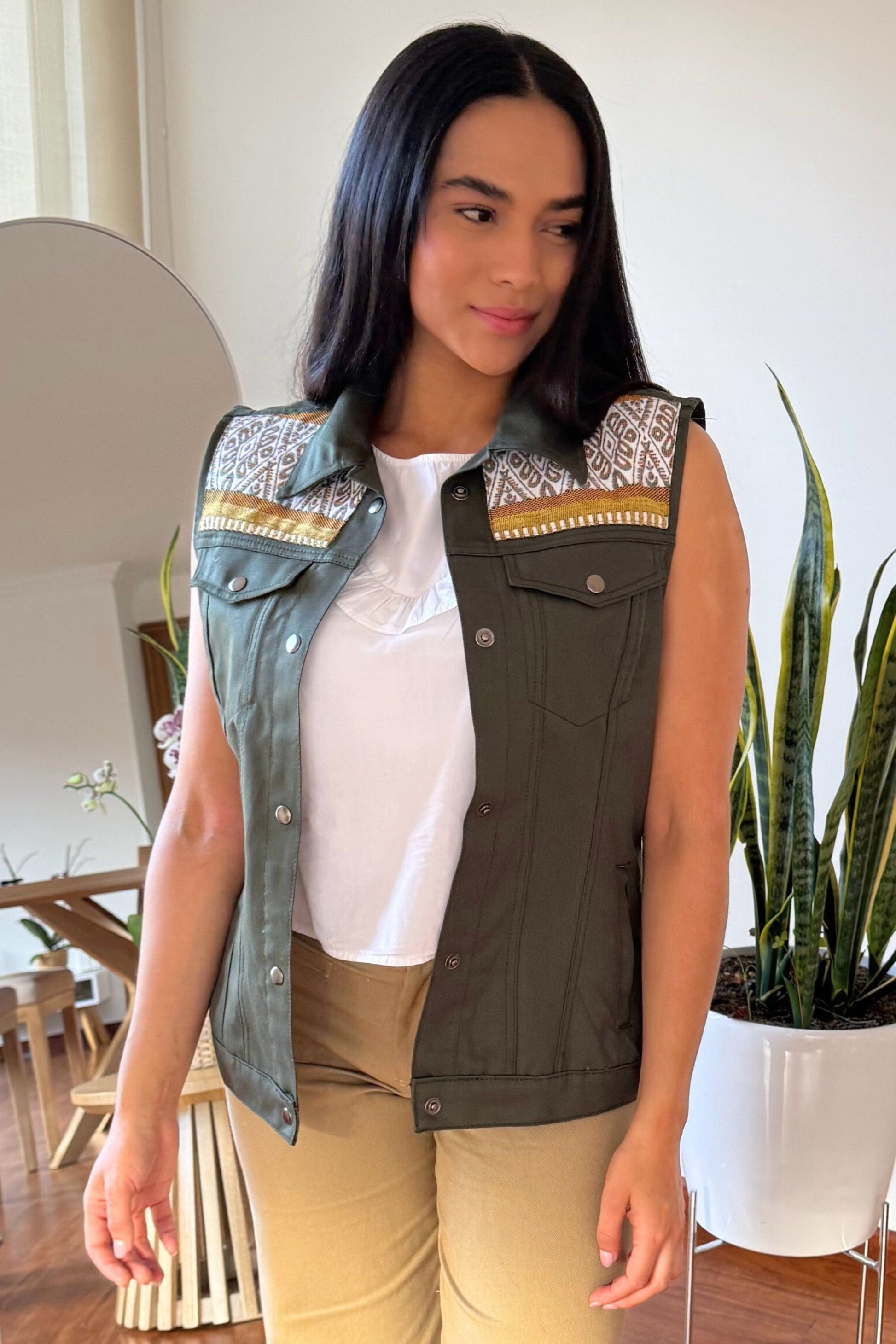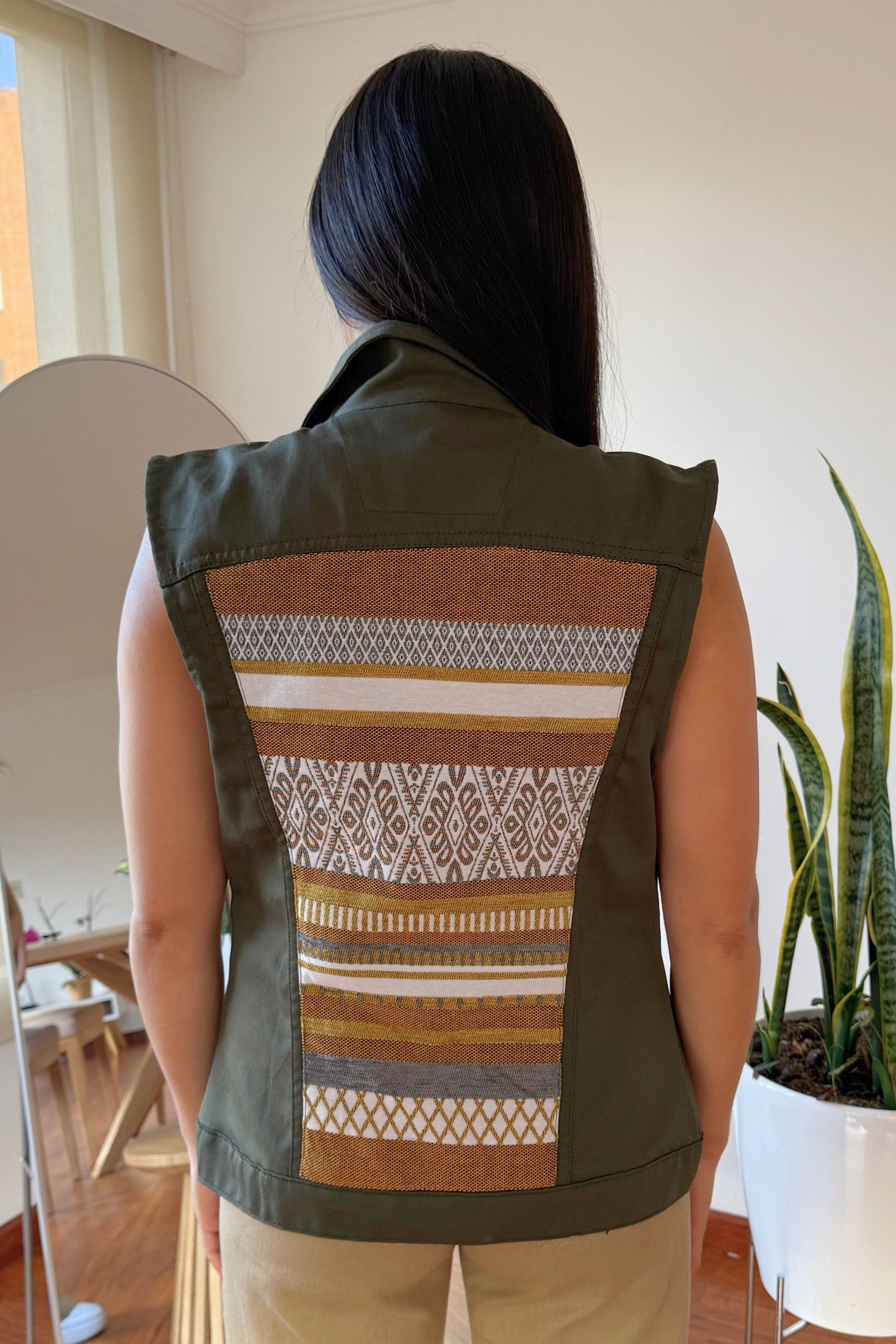 Este chaleco combina el estilo clásico con un toque moderno y artístico.